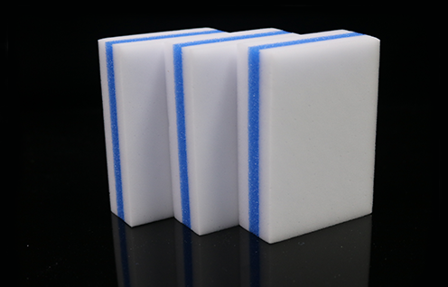 復(fù)合納米海綿是用普通密度納米海綿或熱壓納米海綿,與百潔布或聚酯纖維海綿等結(jié)合,通過廠家特殊工藝處理使之粘合在一起,既有納米海綿的功能又有其它材料的功能,達(dá)到一綿二用甚至是多用。